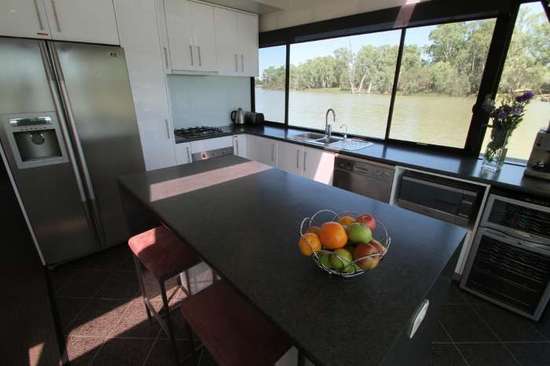 Pure Pleasure is a diamond houseboat, the ultimate in luxury with its five queen bedrooms, all with en suite bathrooms and each with their own TV and DVD. There are some DVD’s on board but you may wish to bring your own. The stainless steel kitchen at the front of the houseboat has fridge/freezer with an ice and water dispenser, dishwasher, stove, microwave, coffee machine that takes ground coffee, wine fridge and the list goes on. In the spacious front living area there is a large screen TV with surround sound and a DVD. There is also an iPod dock and PlayStation 2 with 1 game on board. The large 10 person spa is located on the shaded roof top. On the rooftop there is also a gourmet BBQ, dining table and chairs and sunbeds.
