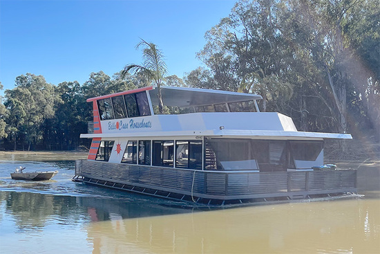This is a luxury 12-berth houseboat with 4 main bedrooms each with their own Ensuite. Our lounge room is located at the rear of the houseboat allowing unsurpassed views over the mighty Murray River. It has all the things you come to expect from a luxury boat including electric boarding platform, dumbwaiter, 106cm LCD TV in the main lounge, heated spa and 106cm LCD TV upstairs under a hard top.