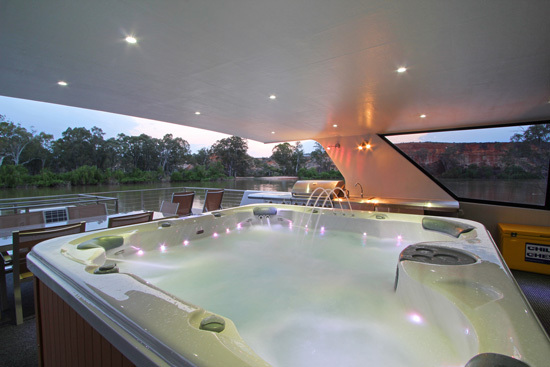 The Desert Rose experience brings you together with your group of special friends or family, sharing meals, drinks on the upper deck, relaxing in the luxury spa and driving from the upstairs helm watching the ever-changing Murray vista unfold.