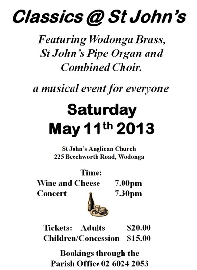 | Event Venue: | St John's Anglican Church 225 Beechworth Rd, Wodonga 3690 |