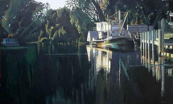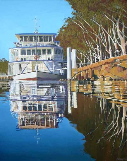 An exhibition of paintings by Peter Wallfried of the ports, paddle steamers and vistas of the Murray River in South Australia.