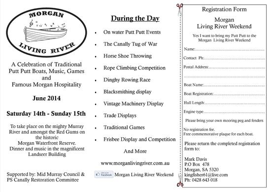 | Event Venue: | Morgan Foreshore Morgan, SA 5320 |
