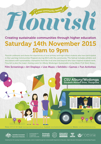Flourish is a free festival that is open to the general community. It celebrates and shares the work and experiences of local primary and high school students who have participated in the Learning Communities program.