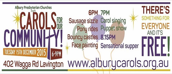 Albury Presbyterian Churches invites you to join us for our 5th annual Carols for our Community, 6pm – 9pm.