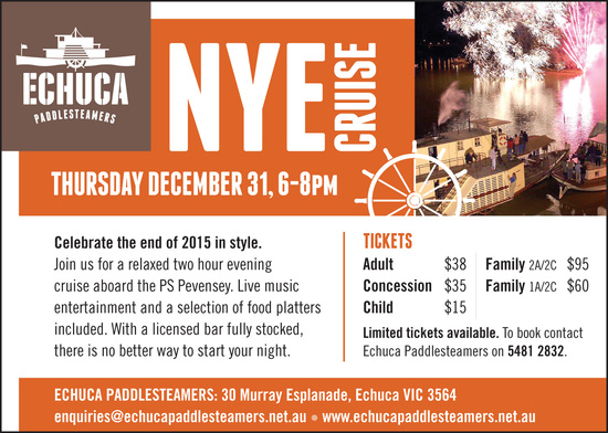 Limited tickets available. To book contact Echuca Paddlesteamers on (03) 5481 2832.