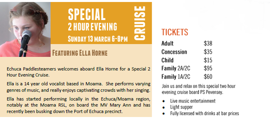 Special Echuca 2 Hour Evening Cruise - March Long Weekend