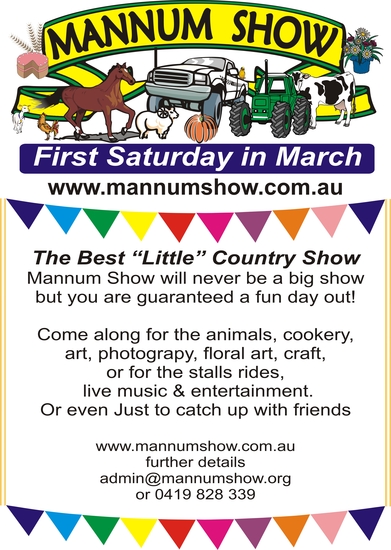 | Event Venue: | Mannum Showgrounds North Terrace 5238 |