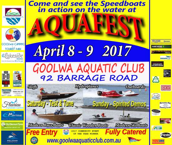Come and enjoy the `Goolwa Aquafest’ classic speedboat event. Its a weekend of beautiful & quick vintage, classic and modern race & speedboats strutting their stuff at the Goolwa Aquatic Club.