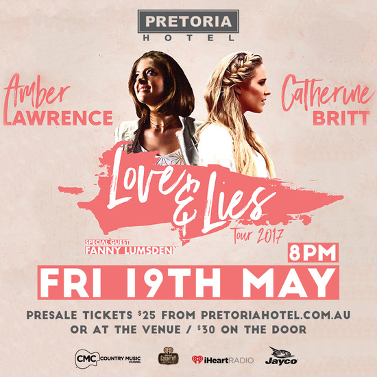 The ‘LOVE & LIES’ tour brings together two of Australia’s award winning and leading female country singer-songwriters, Amber Lawrence and Catherine Britt with special guest opener, Fanny Lumsden.