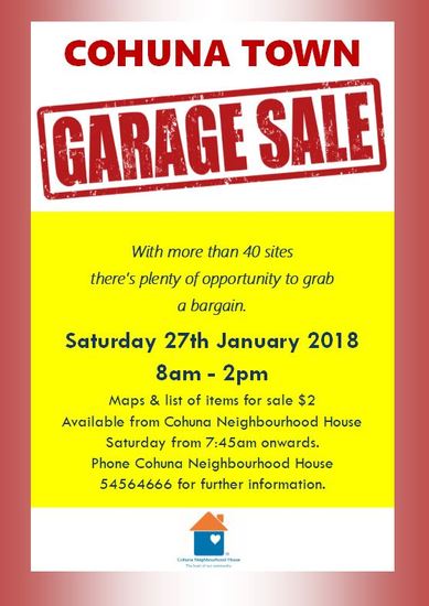 | Event Venue: | Cohuna Town Garage Sale Cohuna Township 3568 |