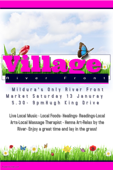 Village Summer Nights Welcomes you to the banks of the Mighty Murray River! Village is Mildura’s only River Front Market. Offering free live local music, Local food,Healing, Readings, Crystals,Massage, Local Art,Local hand made products and Much More.