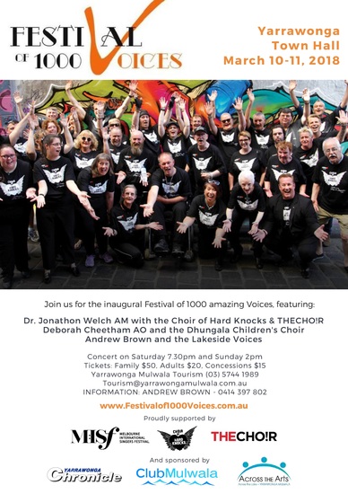 We are excited to announce that Dr Jonathon Welch AM with THECHO!R will be proudly supporting and featuring in the inaugural Festival of 1000 Voices (March 10 – 11, 2018).