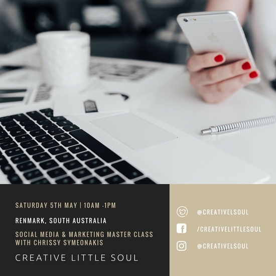 On social media, but unsure of how to get the best out of your marketing campaigns, strategies, paid campaigns or database? Creative Little Soul’s Chrissy Symeonakis will be hosting a Social Media Marketing Mini Master Class, where you’ll have the ability to learn a few tips, trips and some information on how best to tweak your online presence, set up campaigns that work, along with how best to create copy and content that grabs the attention of your audience for the long term.