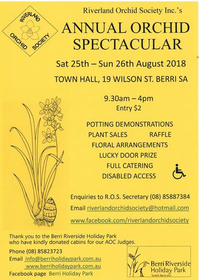 All are welcome to the 2018 Annual Orchid Spectacular. Around 350 colourful, beautiful or unusual orchids will be on display. Informative Potting Demonstrations held each day, Lucky Door Prize, Plant Sales, Raffle, Floral Arrangements for Sale, Trading Table, Catering and disabled access.