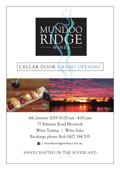 Come and join us for our Grand Opening at our cellar door at 77 Battams Road Moorook.