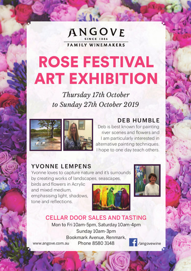 Angove Family Winemakers Art Exhibition – A collective display of works by local artists Yvonne Lempens and Deb Humble.