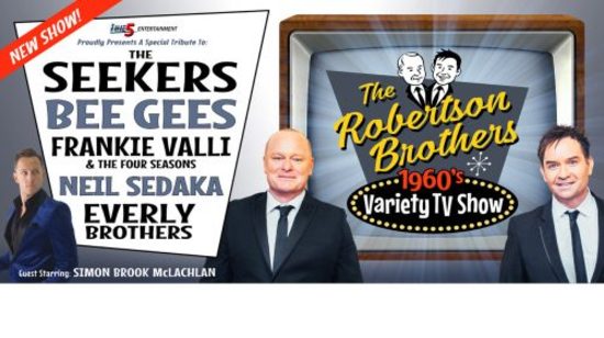 Well don’t miss THE ROBERTSON BROTHERS 1960’s TV VARIETY SHOW with special guest Simon Brook McLachlan – from the original cast of the hit musical Jersey Boys.