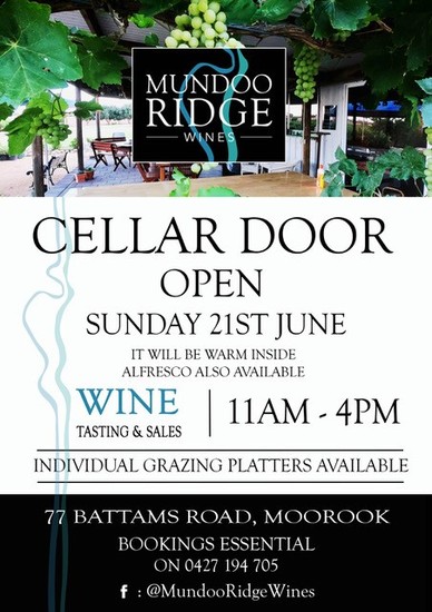 We are reopening our cellar door on Sunday 21st June, from 11am to 4pm for tastings and sales.