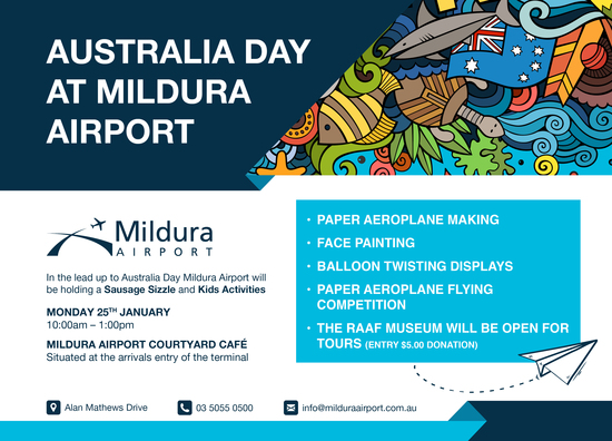 Come along and enjoy our Australia Day celebrations at the Mildura Airport.