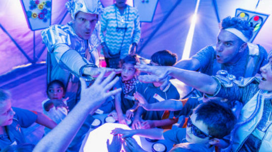 Whoosh! is an immersive and multi-sensory performance that puts children at the centre of the action. Kids board a stunning custom-built spaceship to co-pilot an intergalactic adventure.