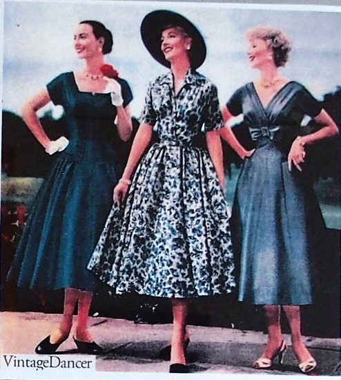 Although still wearing the nipped-in waists of the ’30s and ’40s, the 1950s were colourful and extravagant. Already the emergence of the new breed of pop stars – especially Elvis – was an important influence,”