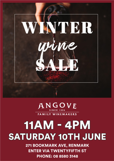 Join us Saturday 10th June at our Angove Cellar Door in Renmark for our huge yearly wine sale.