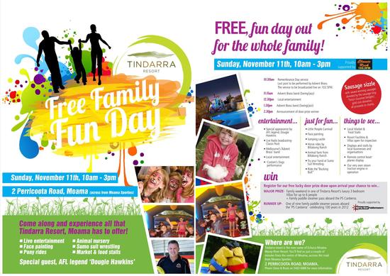 On Sunday 11th November 2012, we will be relaunching our property as ‘Tindarra Resort’. Bring your whole family to experience all this fantastic property has to offer, plus a huge range of activities, markets, animals, music, displays and even celebrity appearances! Gates open at 10am until 3pm. We will also be giving away a massive door prize on the day to one lucky family. Register your details at the property and be in attendance for the draw on the day for your chance to win. Keep an eye out for more information to be posted here very soon!