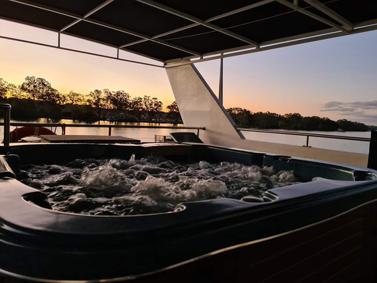 True Blue has a spacious open living design and now has a spa. This two storey houseboat gives you room to spread out and enjoy your River Murray holiday in luxury. Large panoramic windows throughout the the boat provide maximum views of the river. All rooms are fully air-conditioned, insulated and appointed with quality furnishing and fittings.