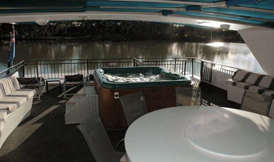 - Top deck bar and bar fridge and large round table seats 12