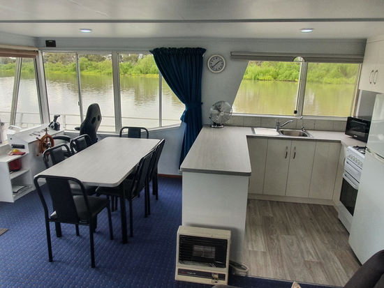 At the heart of the clever design is a wall bed which folds up to reveal a day bed/ couch. The separate shower and toilet enclosures provide added comfort. The sheltered rear deck overlooks the river when moored and the comfortable chairs and rod holders allow guests to really relax.