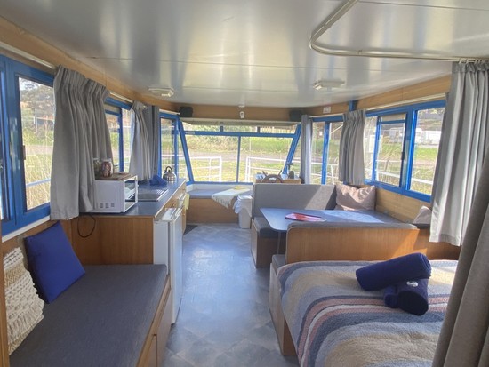 - Fully equipped kitchen [Stove/grill, microwave, 12 volt bar fridge]