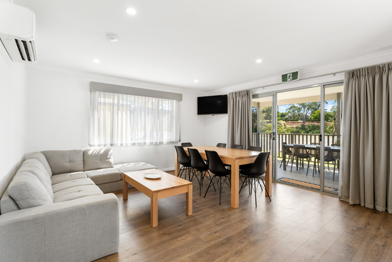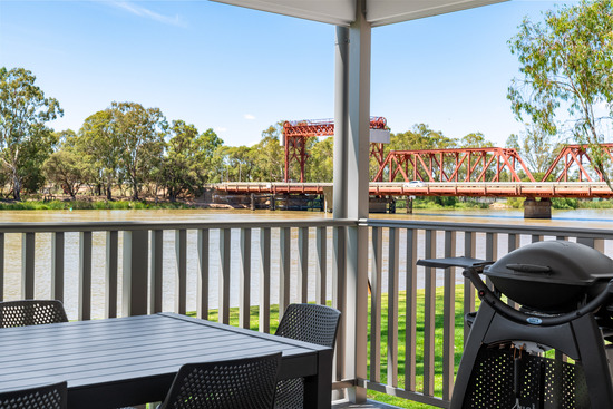 BRAND NEW to Riverbend Caravan Park, Renmark! The Premium 3 bedroom Cabins are positioned in the best spot on the riverbank and are top of the line with their modern finishes, spacious rooms, and undisrupted views of the river from their personal decks – only 6 meters from the riverfront. They sleep up to 8 people over 3 bedrooms, which enables families and friends to enjoy the shared spaces of the open living area & kitchen while still having a room to retreat to for some alone time. They also feature a cooks kitchen with functional bench space, full sized fridge, cook top & conventional oven, plus a Weber Q for outdoor cooking, making them the perfect choice for guests who want to enjoy connecting & creating memories together.