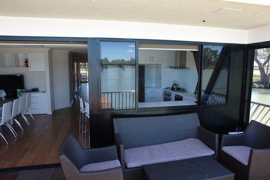 - Large sliding door opens the lounge up to the Upstairs Bar/Spa area.