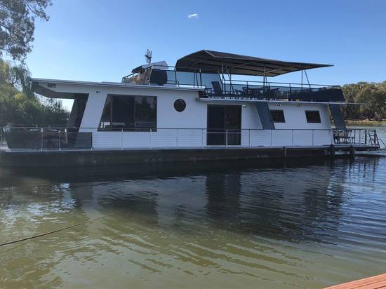 The new internal renovation comprises a new kitchen,bedroom cupboards, carpet, blinds and ducted air conditioning to all rooms. Features include 4 bedrooms, 3 bedrooms with queen size beds which can be separated into single beds with sliding door access to the deck and 1 bedroom with a double bed plus a sofa bed in the Lounge. There are 2 bathrooms, 2 toilets, dishwasher, microwave, Nespresso Pod Coffee Machine, 2 LCD TV’s, DVD and CD, MP3 and IPod player with new sound system throughout plus gas heating and air conditioning. Outside there are a gas Pizza Oven, BBQ at the front and BBQ at the back of the Houseboat.