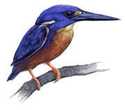 | Azure Kingfisher Ceyx azurea At home in the Redgum forests along the Murray and it's Victorian tributaries. It is frequently sighted on low overhanging branches, scanning the water for small fish, frogs and insects. |