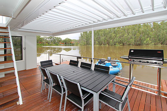 - large rear deck with unique Vergola roof system & outdoor table for 8