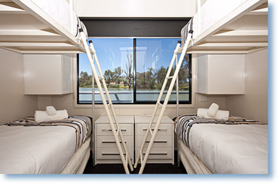 Luxurious holiday escape for smaller groups. The newest mid sized 3 bedroom, 10 berth boat, boasting all the modern features of our Indulgence range houseboat fleet. The under cover top deck’s second helm ensures everyone is where the action is. Enjoy a gourmet BBQ, unwind in the deluxe spa or sit and chat at the bar with a view. Your luxury floating apartment features plasma TV/DVD, dishwasher, 2 door fridge with ice & water dispenser, washer/dryer and much more. Sweet Indulgence has 3 queen beds or 2 queen beds & 4 bunks, all in a smaller yet indulgent houseboat. 2 bathrooms (1 ensuite) and reverse cycle air conditioning / heating throughout. An economy cruiser ideal for a smaller group with larger expectations. FREE PolyCraft Hire with every Sweet Indulgence holiday booked.