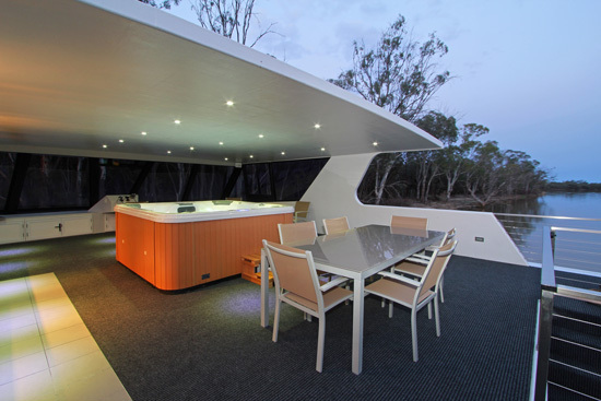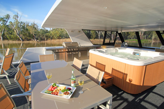 The Desert Rose experience brings you together with your group of special friends or family, sharing meals, drinks on the upper deck, relaxing in the luxury spa and driving from the upstairs helm watching the ever-changing Murray vista unfold.
