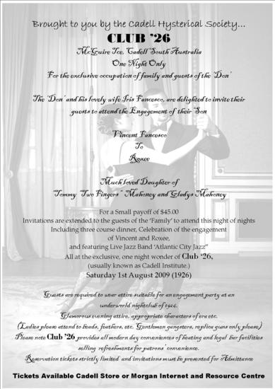 Tickets Available Cadell Store or Morgan Internet and Resource Centre
