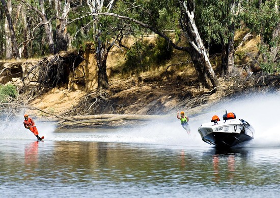 Starting in Torrumbarry and finishing in Echuca, boats carrying one driver, one observer and two skiers travel a distance of 80 kilometres through 126 bends in the Murray at speeds of up to 200km/h. There’s a number of competitive classes ranging from children under 16 years of age through to an open ‘super class’ category.
