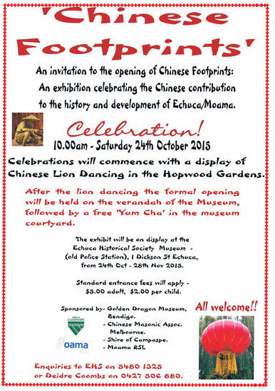 Chinese Footsteps is an exhibition celebrating the Chinese contribution to the history and development of Echuca Moama.
