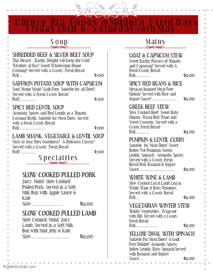 Towns Close By: Buronga, Irymple, Wentworth, Dareton, Red Cliffs, Trentham Cliffs, Cullulleraine, Gol Gol, Buronga, Trentham Cliffs, Renmark, Robinvale, Merbein, Nangiloc, Ouyen, Swan Hill, Hattah, Meringur, Werrimull, Werrimull, Euston, BalranaldBack to Murray River Events Page