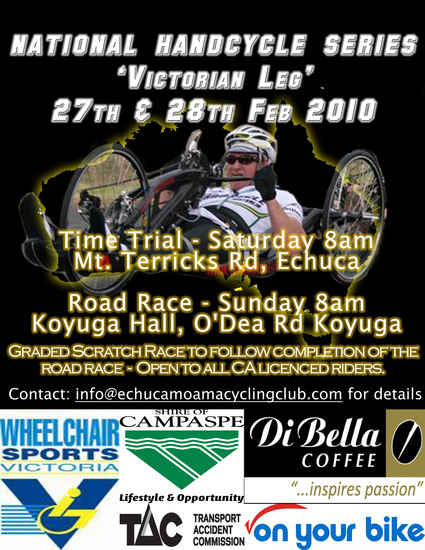 The Echuca Moama Cycling Club is excited to host race 2 of the National Handcycle Series
