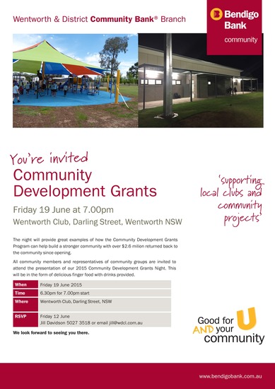 COMMUNITY DEVELOPMENT GRANTS-Wentworth & District Community Bank