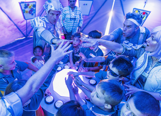 Whoosh! is an immersive and multi-sensory performance that puts children at the centre of the action. Kids board a stunning custom-built spaceship to co-pilot an intergalactic adventure.