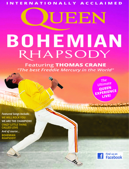 Queen, Bohemian Rhapsody will perform all the great hits like We Will Rock You, Crazy Little Thing Called Love, We Are The Champions, Radio Ga Ga, A Kind of Magic, I Want To Break Free, Another One Bites the Dust, Bohemian Rhapsody.