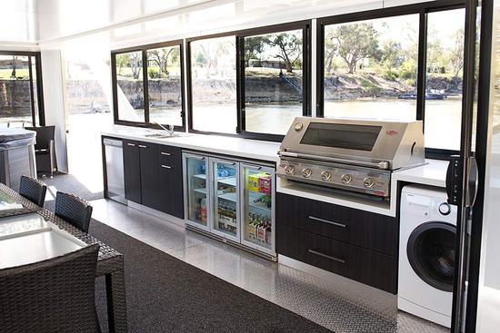 *Top deck features a large fibre glass canopy for all weather use, with sliding windows, heated spa, sun lounges, gas BBQ, outdoor furniture, 2 x large Eski & sink with cold and hot running water for your convenience * Diesel inboard engine - Hush power generator * 12 volt and 240-volt lighting & power