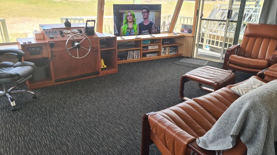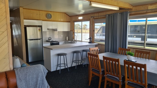 Imagine has four spacious bedrooms, two with ensuite bathrooms and two with a shared ensuite gives that extra touch of privacy. The rear lounge converts to a fifth bedroom making Imagine an ten berth boat without someone having to sleep in the front lounge. All bedrooms have a deck access door. A roomy front lounge area has TV, VCR, DVD and CD player and a sumptuous leather lounge suite and the rear lounge a TV and VCR. A swim deck, canopied upper deck, ski boat hitch, ice box, gourmet BBQ, Laundry and kitchen with a dishwasher, microwave and refrigeration makes the treat complete. Imagine handles very well, is economical, air conditioned and gas heated for your comfort. Relax and enjoy.