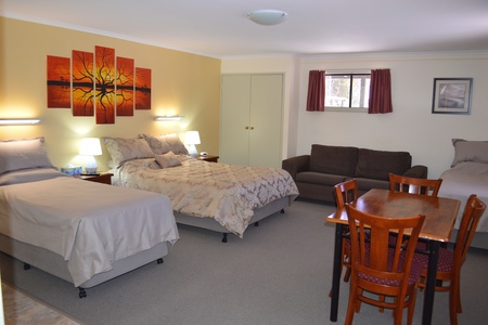 Executive Room1 Bedroom | 1 Bathrooms | Sleeps 1 to 5Executive Room features * Queen Bed and 2 singles * Bathroom with separate toilet * Kitchenette with full size fridge, microwave, toaster, cutlery and crockery * LCD TV with DVD * Lounge * Dinni... Enquire Here! |