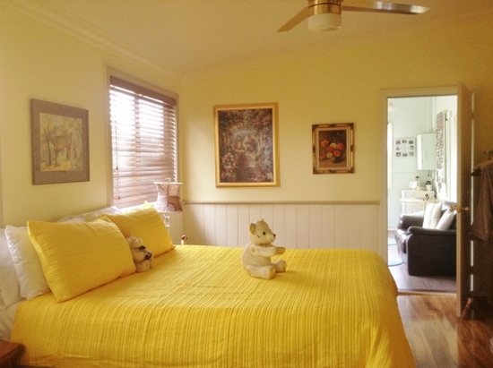The shaded, secure garden is a real treat with table, chairs and bird feeder. Potted colourful plants complete this tranquil garden. A list of dog friendly wineries and cafes nearby is available.The Garden Suite has polished boards. The suite is comfortably decked out with a leather couch, fridge, table chairs, quality teas, coffee and muscat, television and large collection of DVD’s. The Queen size Wenetex bed is excellent for asthma, arthritis, back problems and receives wonderful reviews.Futon single bed is available. Velour bathrobes are provided and a private ensuite